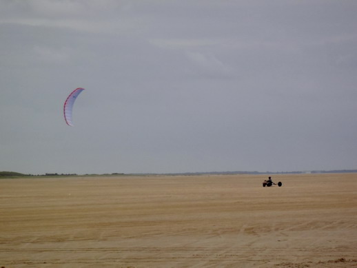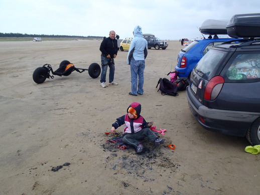 Myslel jsem, že to je neskutečně veliká rozloha ale to jsme jezdili jen na malinkatém proužku, kde nebyla voda. Vítr zesílil na 14m/s a to jsem se už bál....taky únava po cestě si žádala své, a to nejen na mě, ale i na autě........Hanina zjistila, že nám syčí guma....honem jsem vše zahodil a pryč z pláže kde bych přetížené auto asi nezvedl.....po výměně rezervy jsme si jeli pro klíče a ubytovali se v našem krásném domečku,
