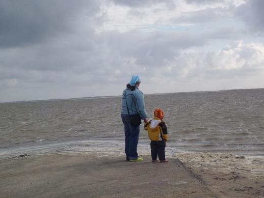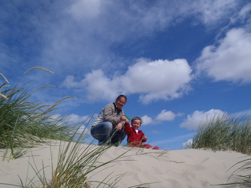 V úterí se usnesla rodinná rada, že ty bigfooty koupíme. Zajeli jsme do Lakolku, koupili bigfooty, kolík a balónek a jeli se kouknout na moře...bylo krásně a teplo. Kačenka poprvé viděla moře z blízka a nejdřív se ho bála...pak jsme jí tamodsud nemohli dostat:-). Nasbírali jsme hafo mušlí a šli se kouknout na duny.